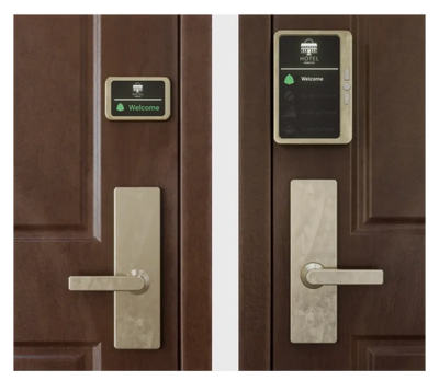 With a focal-point device above the door handle, providing clear “DND” & “Make Up Room” options